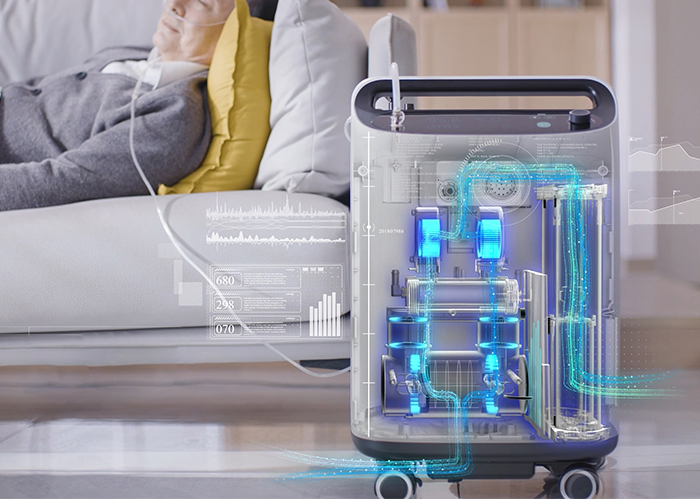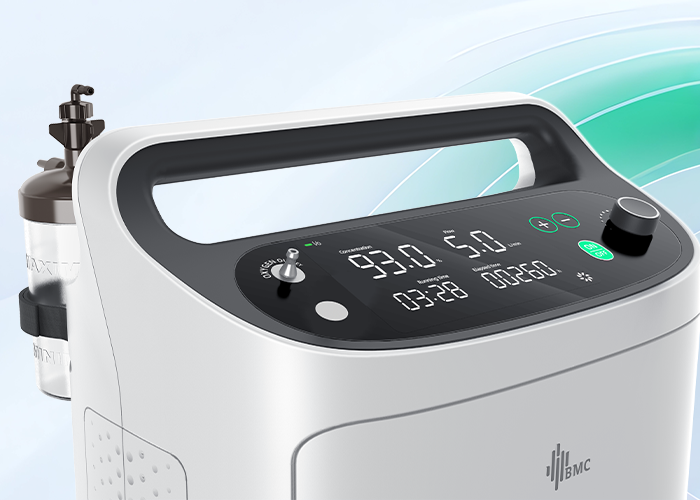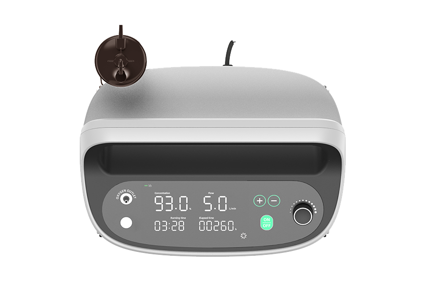 El control remoto inteligente permite configurar el equipo a distancia (retroiluminación, temporizador y flujo de oxígeno), lo que facilita la oxigenoterapia.
