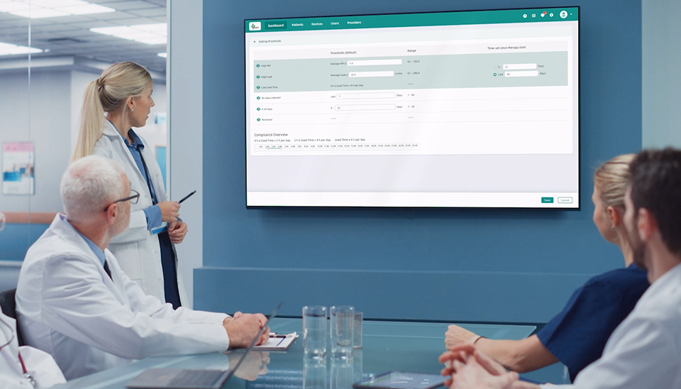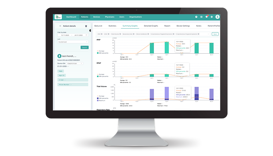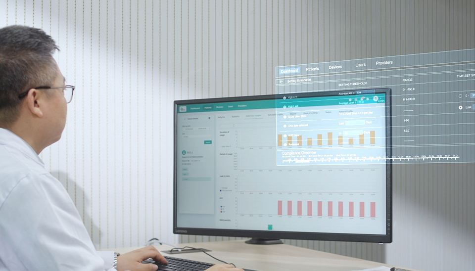 La plataforma BMC presenta toda la información en una interfaz unificada e intuitiva. Con unos pocos clics, los usuarios pueden acceder instantáneamente a los datos del paciente y al estado de los dispositivos, así como ajustar de forma remota los parámetros del tratamiento.