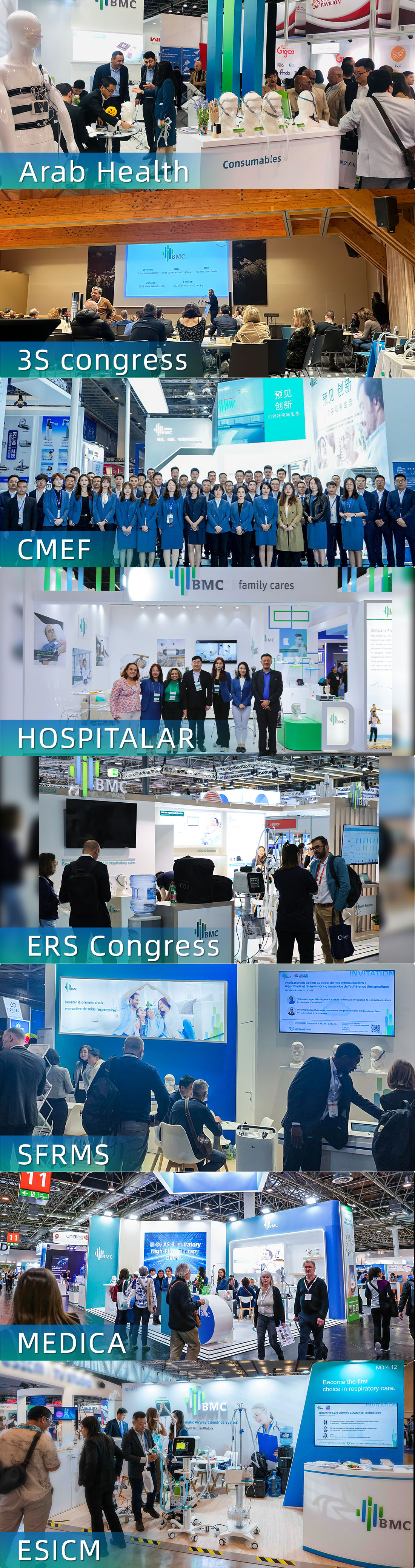 Arab Health, 3S Congress, CMEF, HOSPITALAR, ERS Congress, ESICM, MEDICA, SFRMS